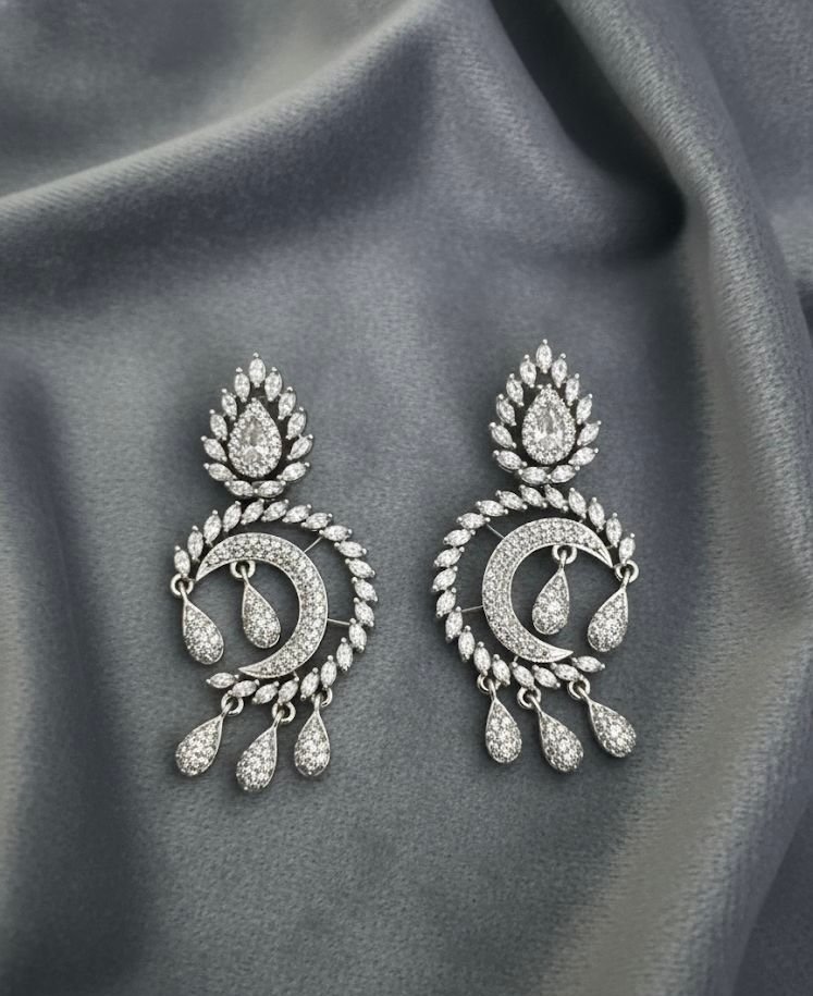 Gracefully designed earrings featuring a crescent silhouette adorned with leaf-shaped crystal accents.